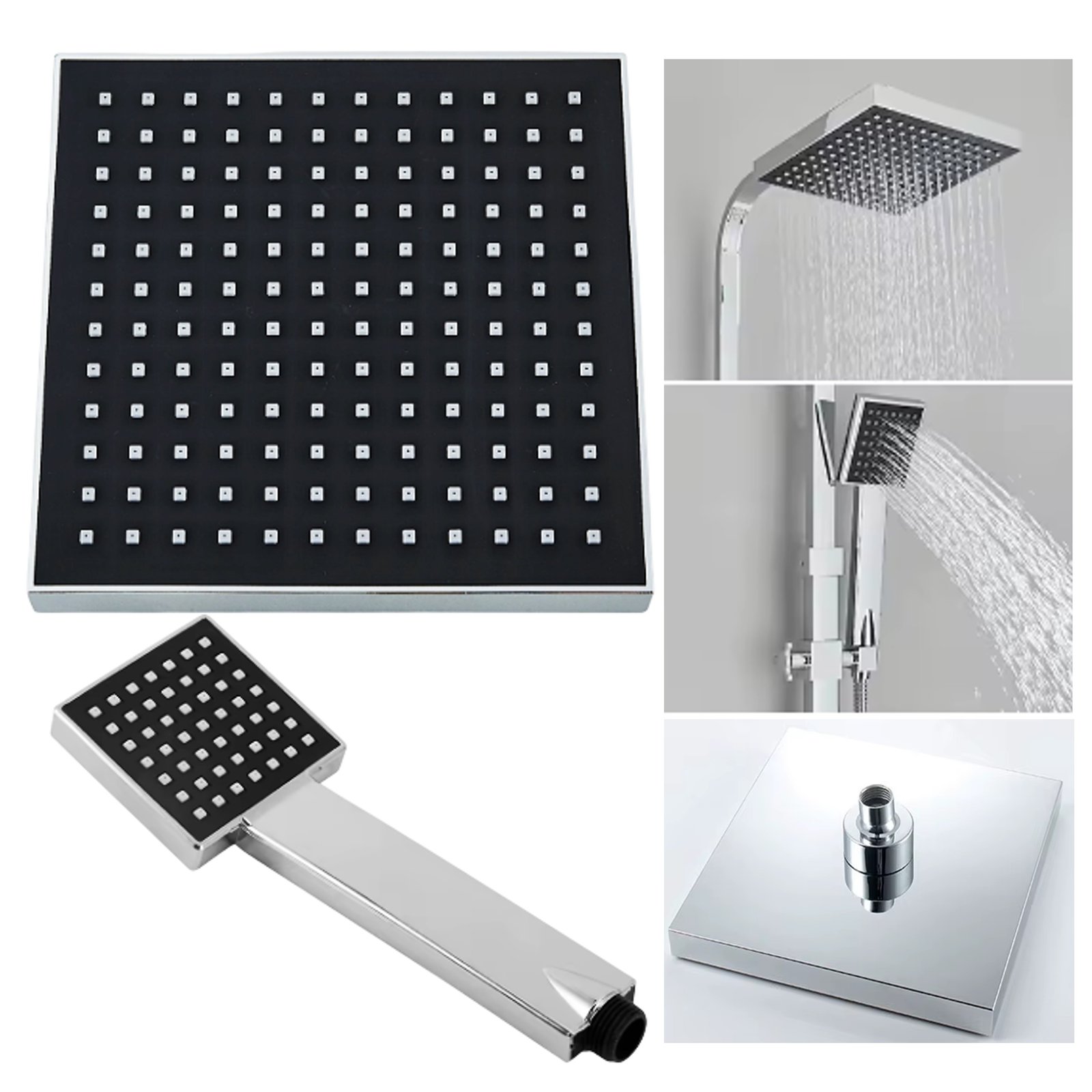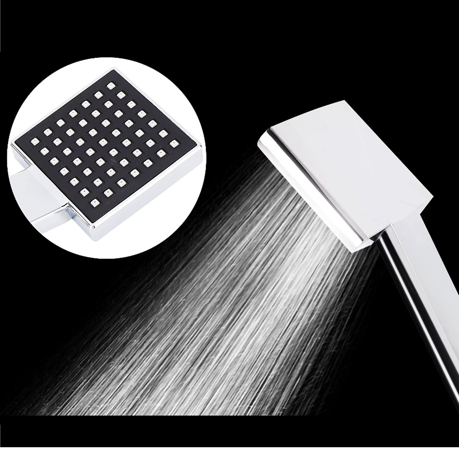 Renueva tu baño con este elegante set de ducha de diseño moderno, compuesto por un plato de ducha cuadrado y un maneral de ducha a juego, ideales para lograr una experiencia de baño cómoda y sofisticada. Ambos cuentan con boquillas uniformes de fácil limpieza, que aseguran una distribución de agua eficiente y ayudan a prevenir la acumulación de sarro. Fabricados en material ABS de alta resistencia, combinan un acabado negro con detalles cromados, aportando durabilidad, funcionalidad y un estilo contemporáneo. Compatibles con conexión estándar universal, son perfectos para baños residenciales o comerciales.